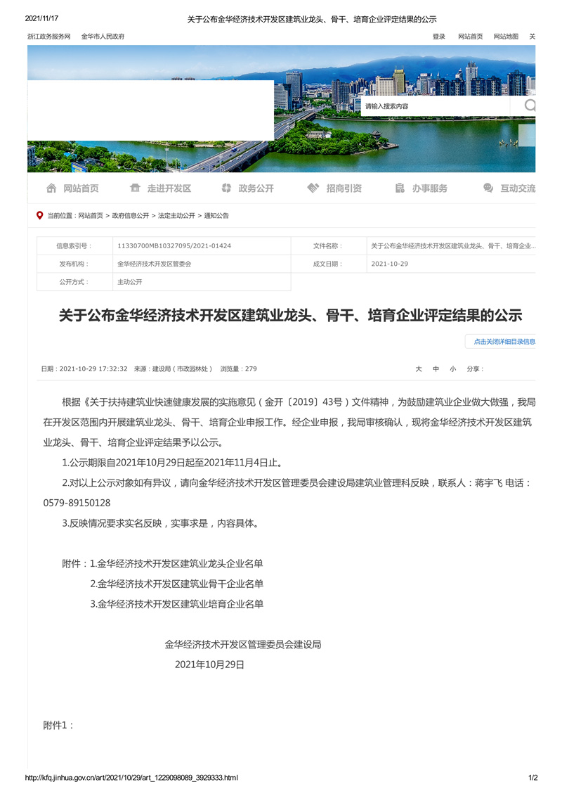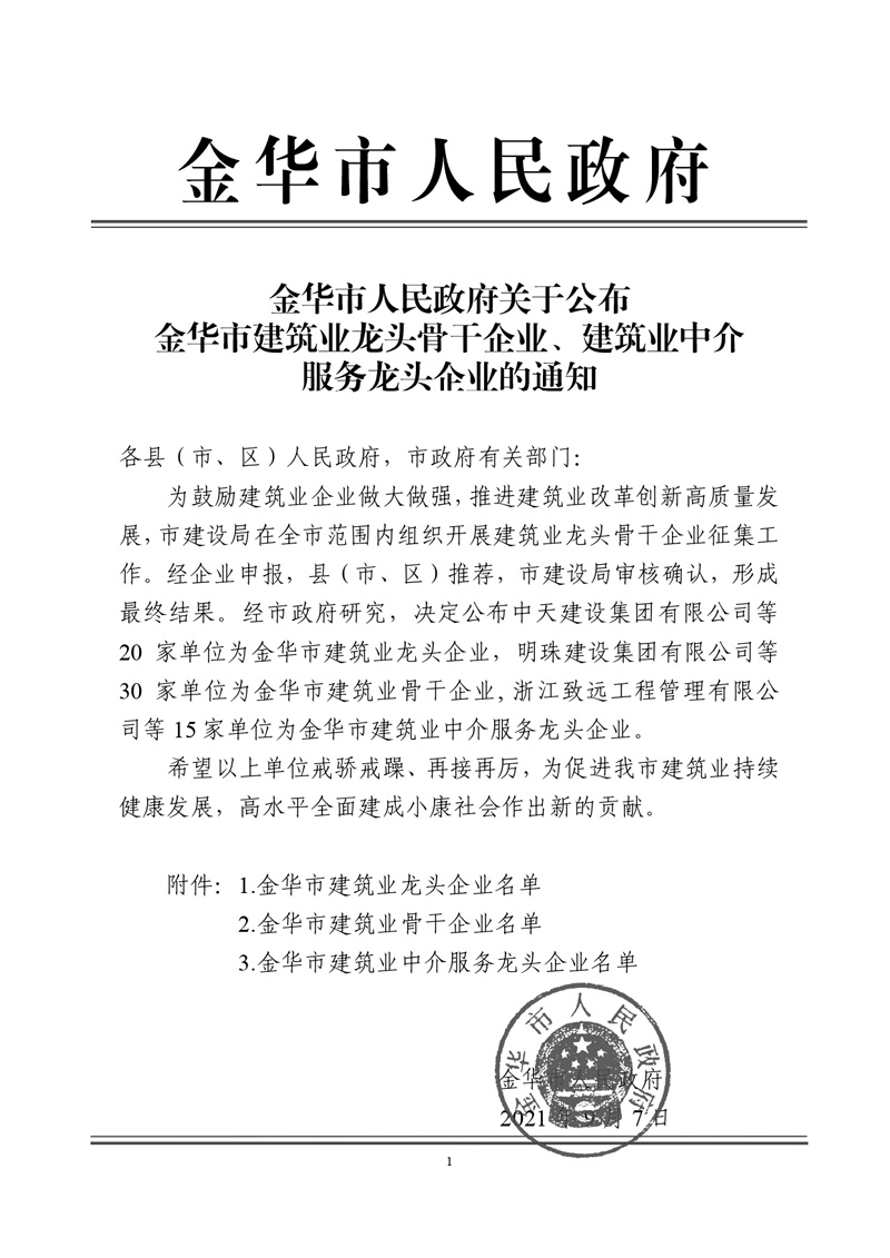Next:Notice on publishing the identification results of leading enterprises, backbone enterprises and cultivated enterprises in the construction industry in Jinhua Economic and Technological Development Zone