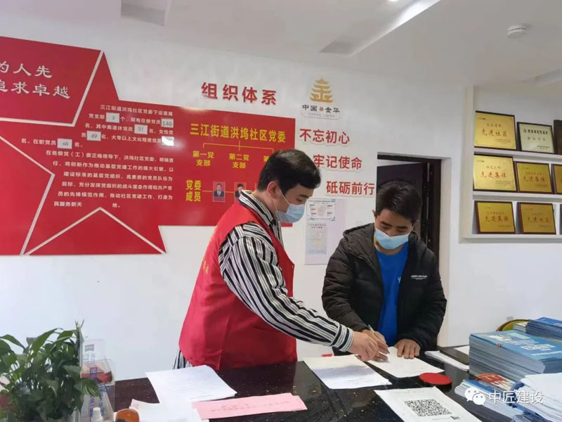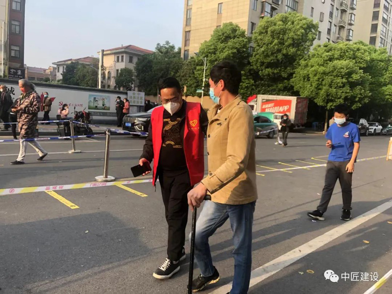 Since the outbreak of Jinhua's"4.15"epidemic,Zhan Xujun,chairman of Zhongjiang Garden Construction Co.,Ltd.,led his family and senior management of the enterprise to devote themselves to the epidemic prevention and control.He was responsible for the overall coordination of epidemic prevention and control in Hongwu community,organized the establishment of nucleic acid sampling stations,guided residents'nucleic acid sampling,maintained order,handled materials,etc.his figure was everywhere and kept busy,trying to make the epidemic prevention and control more orderly."As a construction enterprise,we must be at the forefront and work at the forefront,"he said.