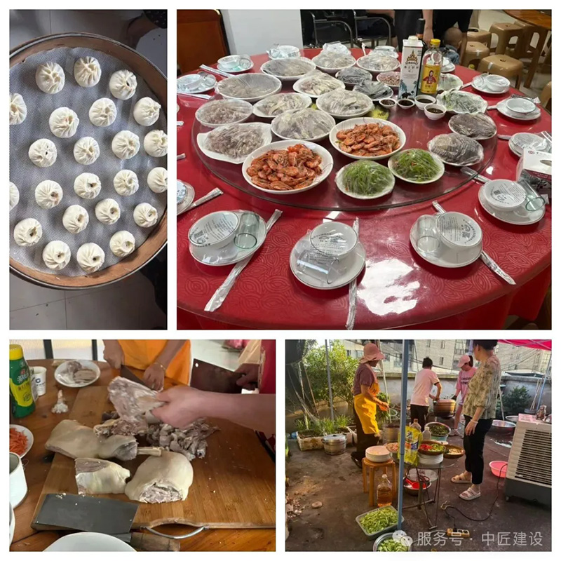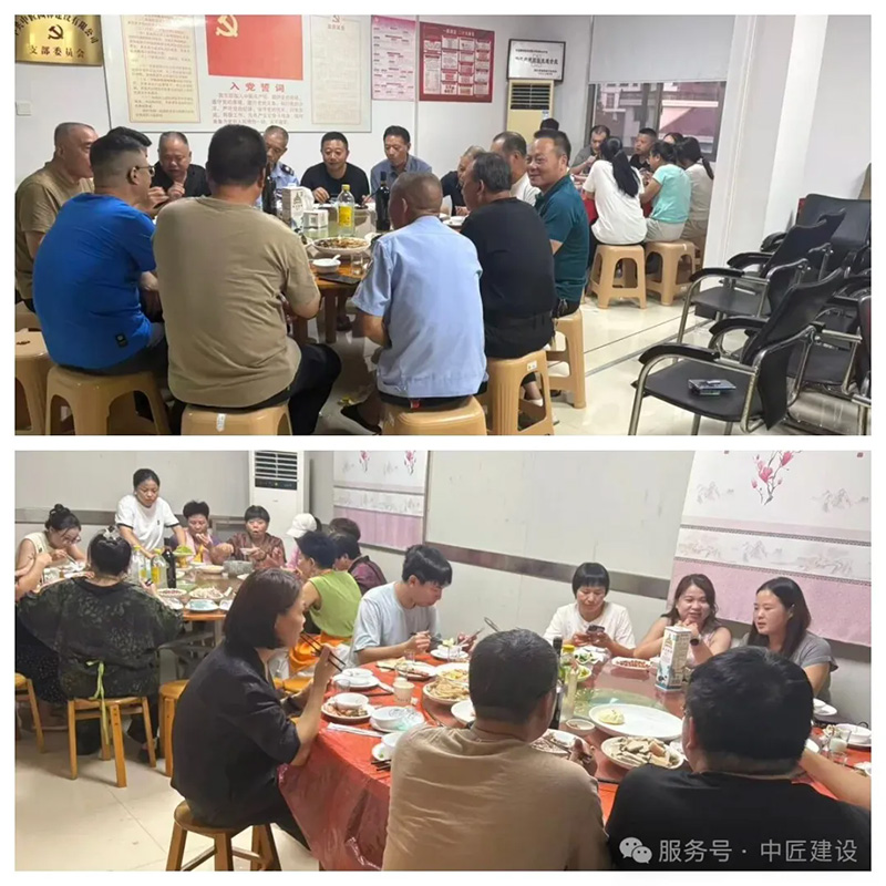 晚飯一個個圓桌拼出團圓陣,企業(yè)員工與社區(qū)居民圍坐一堂,包子的甜香與家常菜的煙火氣交織彌漫。社區(qū)阿姨端來拿手的菜,企業(yè)年輕人與長輩們的家常話融在一起。舉杯時,“中秋快樂”“闔家幸福”的祝福聲此起彼伏,平日里的同事、鄰里此刻都成了“一家人”,酒杯碰撞的脆響與歡聲笑語在暖黃燈光下回蕩,每個人臉上都洋溢著滿足的笑容,仿佛這一桌桌飯菜不僅暖胃,更將心與心的距離拉得更近,勾勒出一幅企業(yè)與社區(qū)攜手、共慶佳節(jié)的溫馨畫卷!